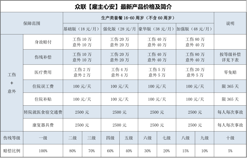 众联雇主责任险身故80万+医疗20万只需38元。