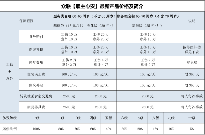 首先,众联劳务是金桥企业托管集团主体业务,用十余年的社保代理经验,针对各行业去研究《劳动法》和《工伤保险条例》,并和中国人保联合推出了一款规避企业风险的产品—《雇主心安》。业务面向全国各地,不受地区限制,从工伤延伸到24小时意外,按月投保,最高保障可达100万,真正规避企业用工风险,解决员工和意外带来的企业赔付众联劳务雇主责任险